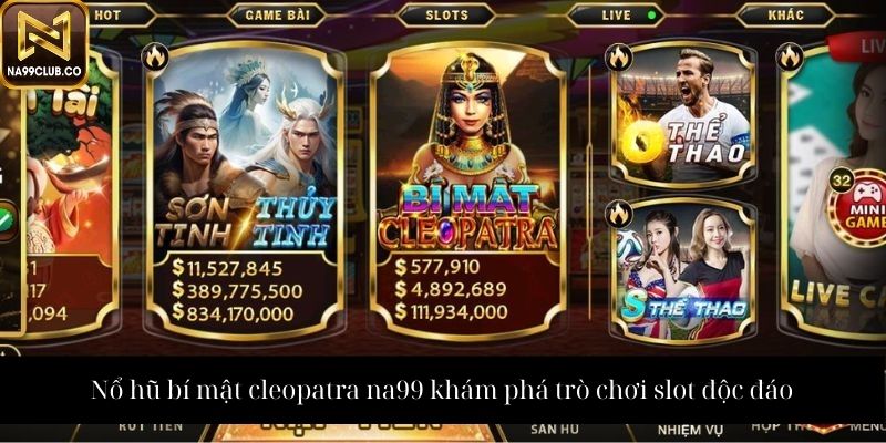 Tiếp theo, từ giao diện chính của Na99, bạn chỉ cần chọn mục trò chơi slot và tìm đến tựa game nổ hũ bí mật cleopatra na99. Giao diện người dùng thân thiện cùng các chỉ dẫn rõ ràng sẽ giúp bạn nhanh chóng hiểu và làm quen với luật chơi cũng như các tính năng của trò chơi.